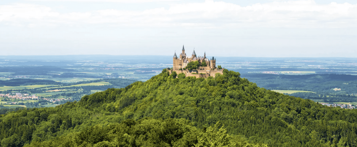 Die Burg Hohenzollern liegt nur etwa 6 Kilometer vom Hotel entfernt. Mit dem Auto erreichen Sie sie in rund 10 Minuten, zu Fuß führt eine wunderschöne Wanderroute von ca. 1–1,5 Stunden dorthin – mit Blick auf die Schwäbische Alb.